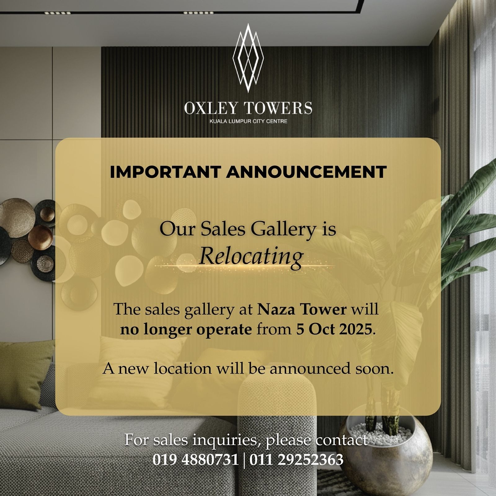The term “Oxley” or “Oxley Towers” or “Oxley Towers Kuala Lumpur City Centre” or “us” or “we” refers to Oxley Rising Sdn Bhd (Company No. 1053340-P), the owner of the website, whose registered office is Upper Penthouse, Wisma RKT, No. 2, Jalan Raja Abdullah off Jalan Sultan Ismail, 50300 Kuala Lumpur.
